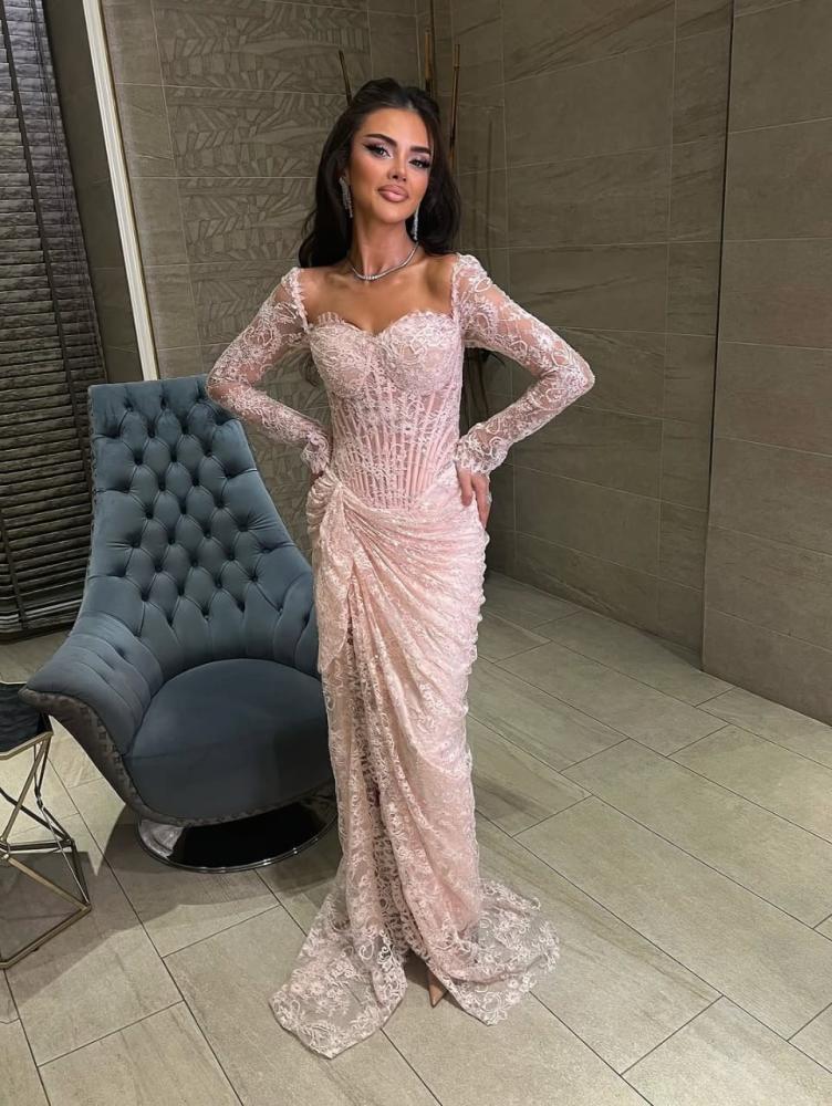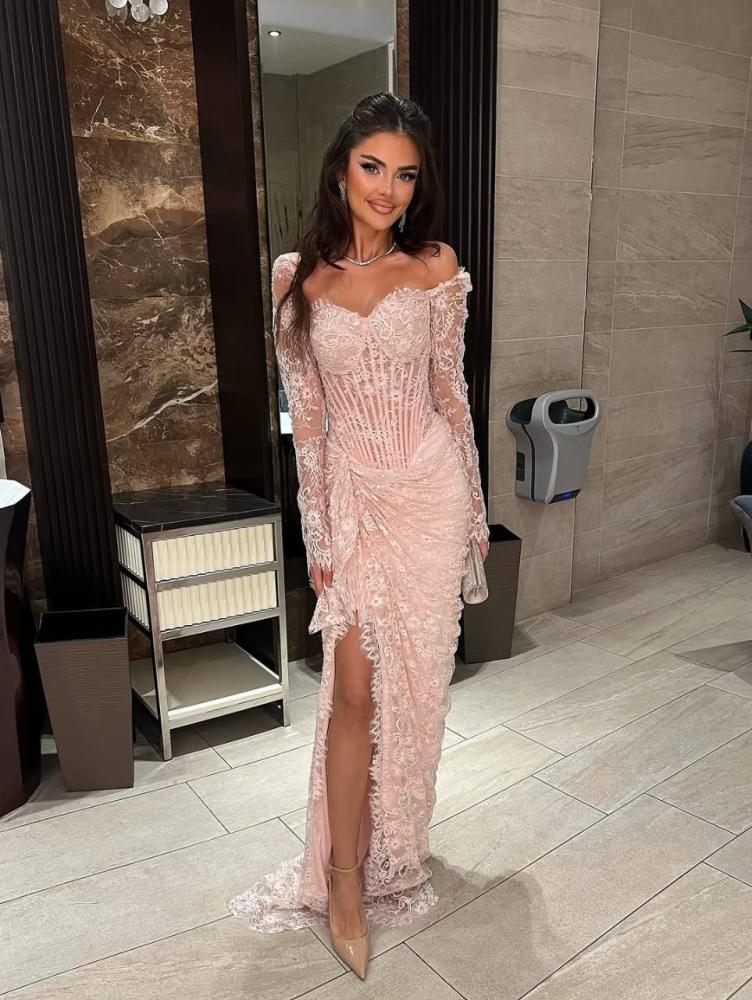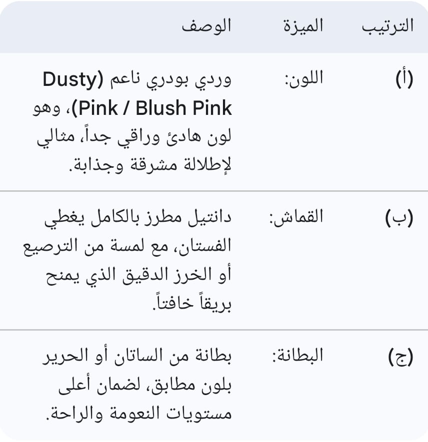 🌸 وصف فستان السهرة (الوردي البودري) الفاخر